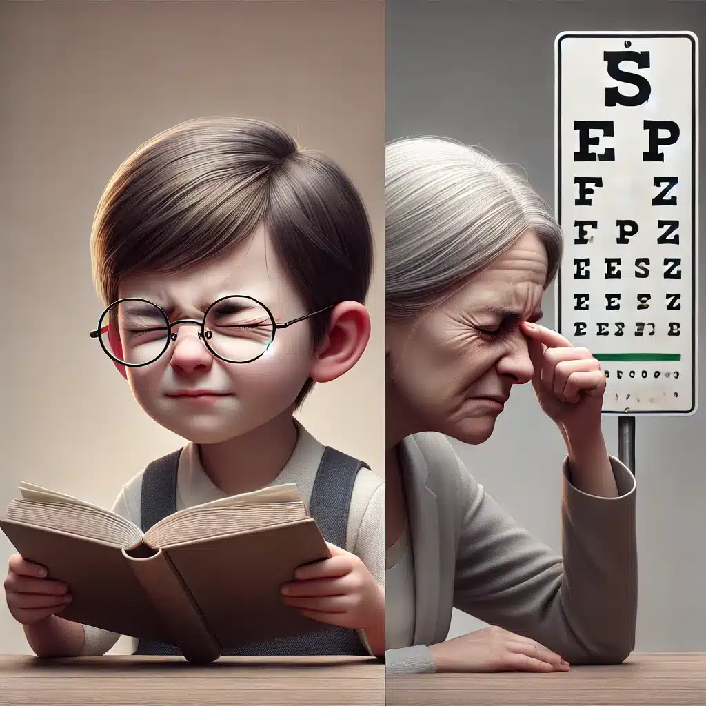 מאמץ ותחושת עייפות בעיניים: ניסיון מתמיד להתמקד באובייקטים מרחוק עלול להוביל אותם למאמץ ועייפות בעיניים, מה שעלול להקשות עליהם להתרכז לפרקי זמן ממושכים ועלול לגרום לכאבי ראש בפרקי זמן תכופים.