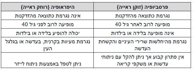 מהם ההבדלים בין היפראופיה לפרסביופיה?